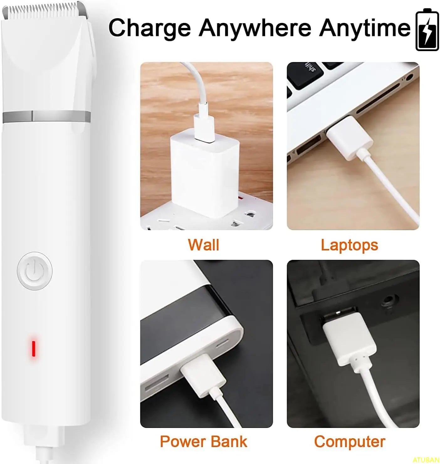 ATUBAN Dog Clippers Grooming Kit Hair Clipper-Low Noise Paw Trimmer-Cordless Quiet Nail Grinder Shaver for Cats and Other Pets