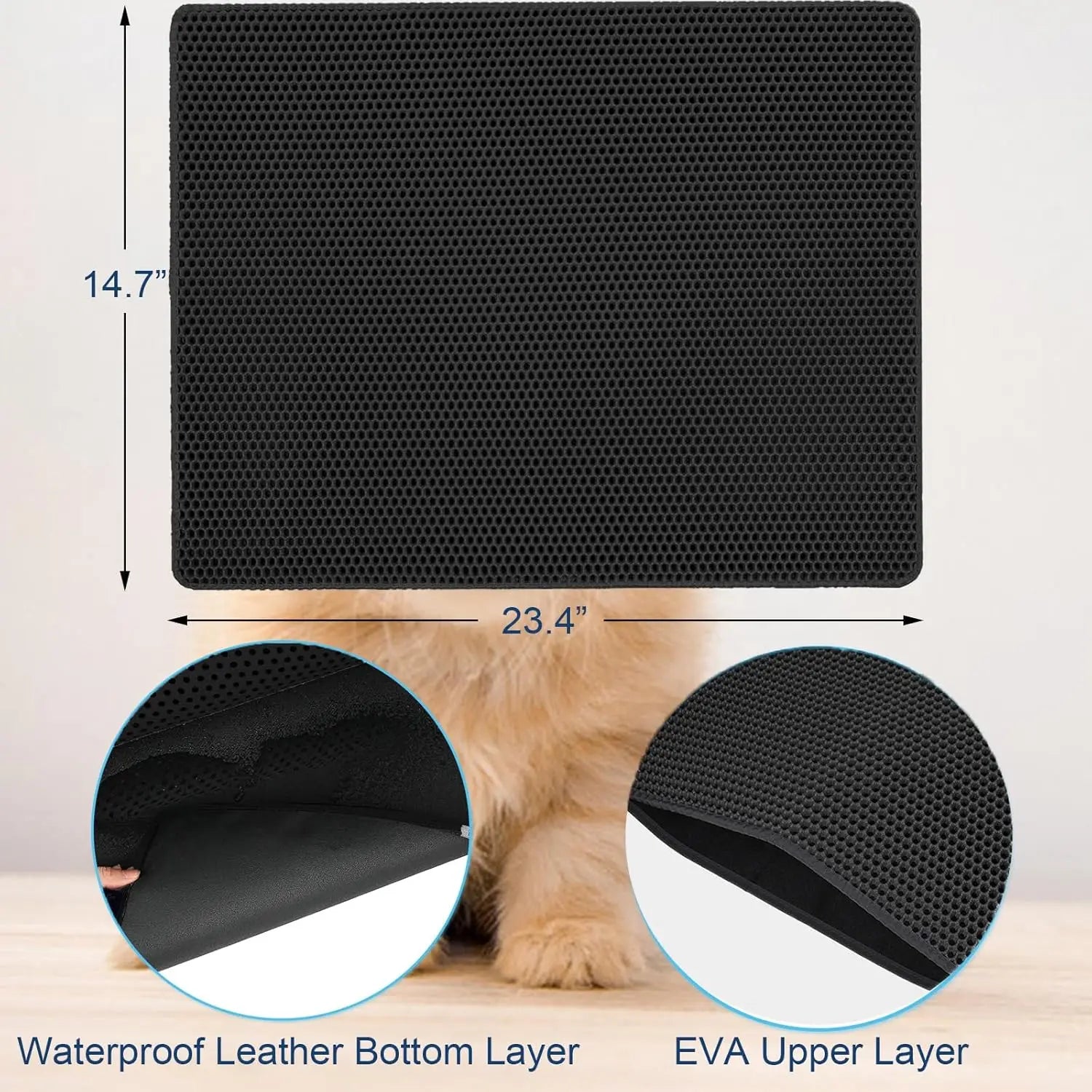 Cat Litter Mat Double Layer Waterproof Urine Proof Trapping Mat 1 Pack, Cat Litter Mat-24"X18" Large Litter BoxTrapping Mat