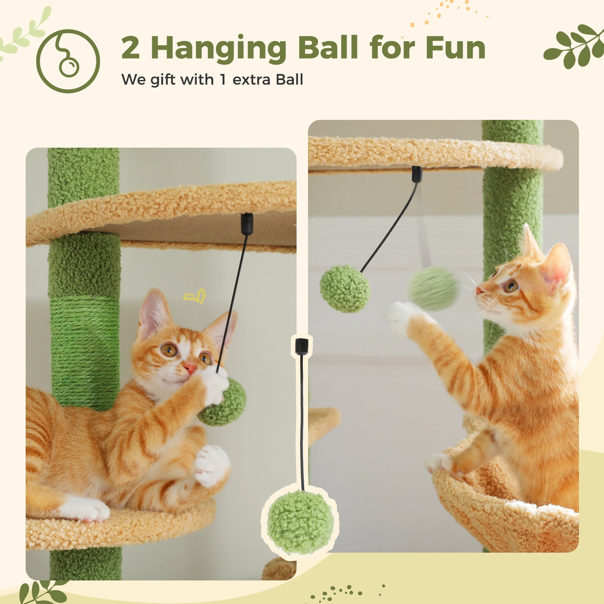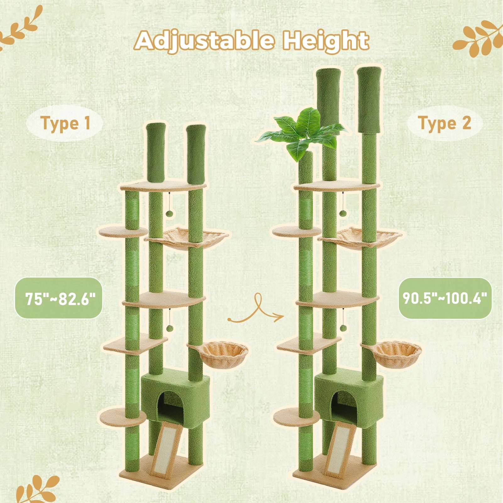 Floor to Ceiling Cat Tree with Scratching Posts Spacious Condo Hammock Tunnel Indoor Height Adjustable Wooden Cat Tower Cat Toys