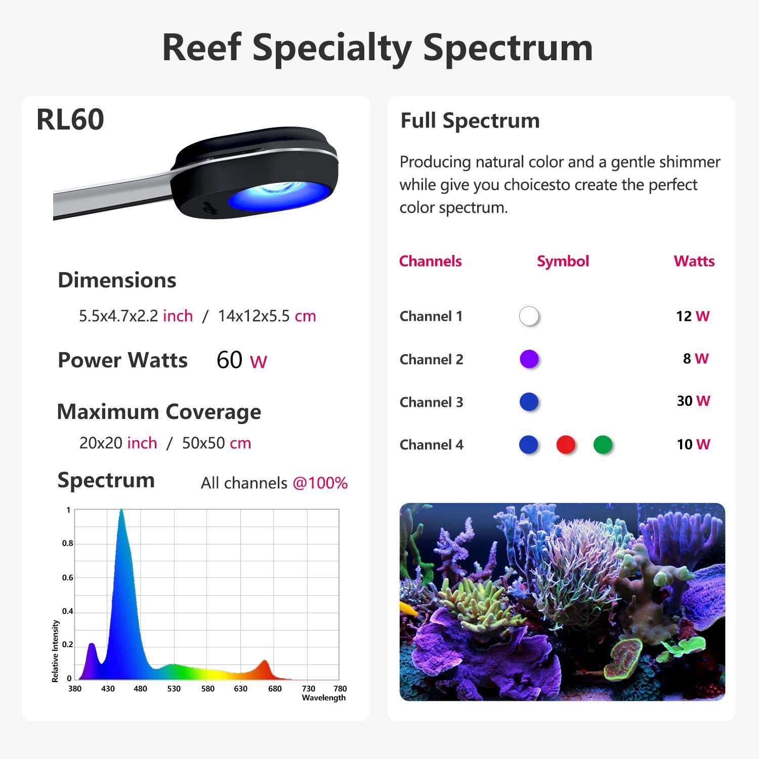 PopBloom RL60 WiFi Full Spectrum LED Saltwater Reef Aquarium Light Supports Mobile WiFi Control