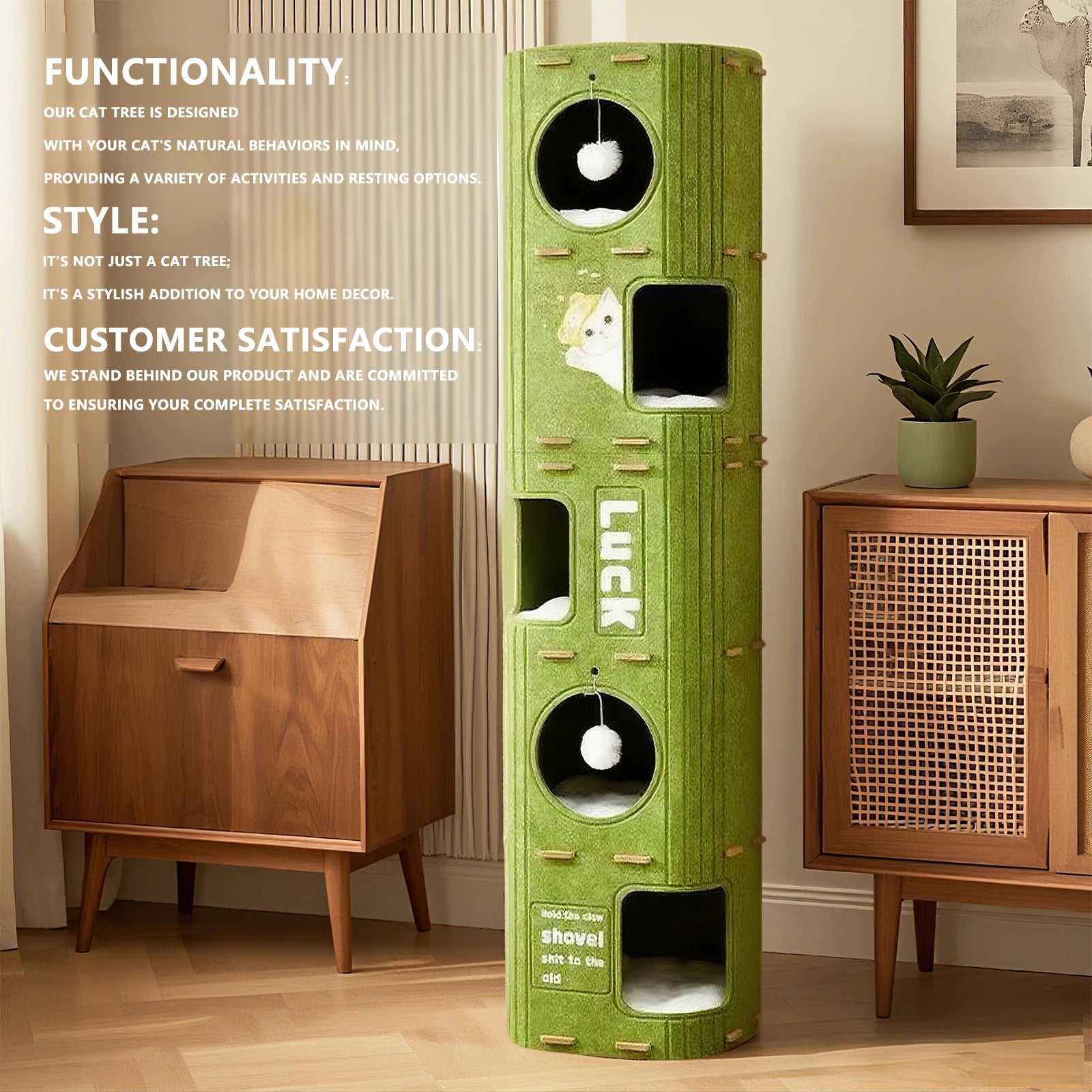 Three-Story Felt Cat Tree, With Scratching Boards And Comfortable Caves - Multi-Story Cat Apartment Tower